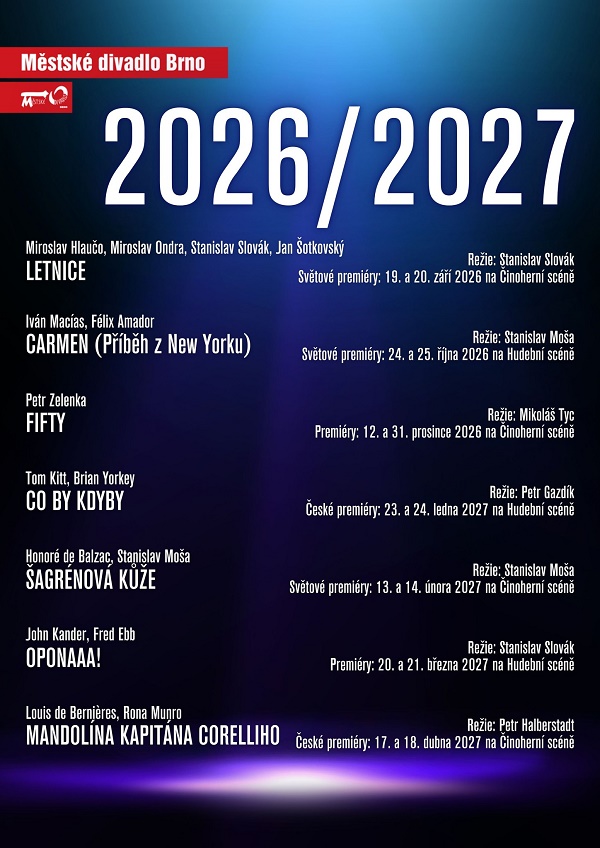 Zároveň repertoár MdB rozšíří činohry Letnice, Fifty, Šangrénová kůže a Mandolína kapitána Corelliho.